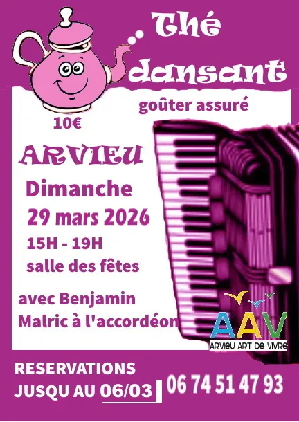 15h à 19h – Salle R. Almès. Avec Benjamin MALRIC à l’accordéon, 10€ avec un goûter. Réservation au 06 74 51 47 93 avant le 6 mars. Proposé par Arvieu Art de Vivre.